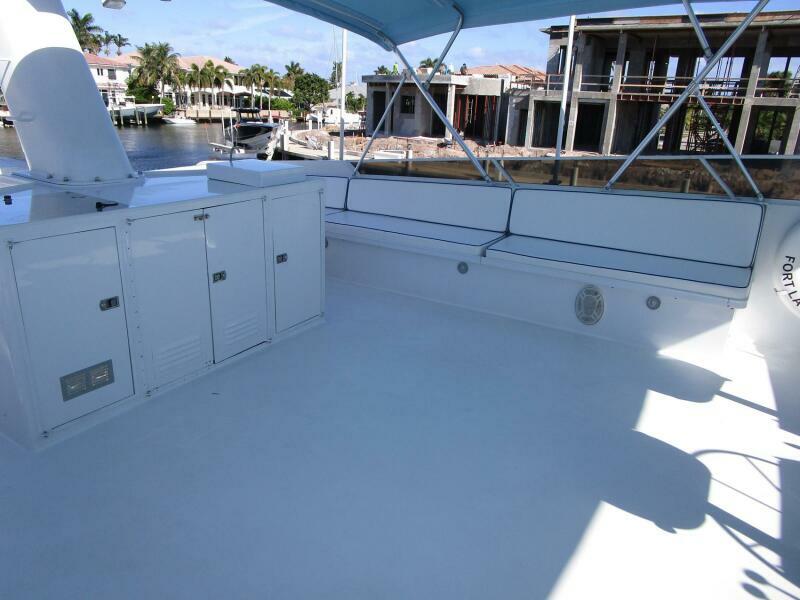This gave her the sought after semi enclosed aft deck, huge boat deck and an abundance of extra storage in her lazarette.