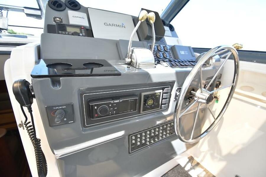 - Fusion AM/FM/SXM/Bluetooth helm deck stereo, with helm and cockpit speakers