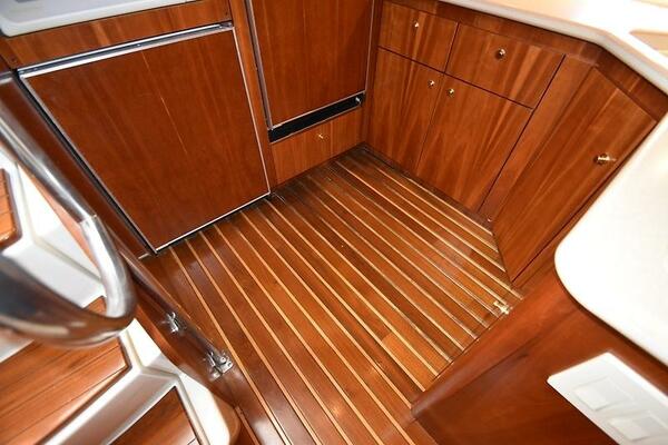 - Beautiful teak/holly lower cabin floor, teak cabinetry, Ultraleather Upholstery