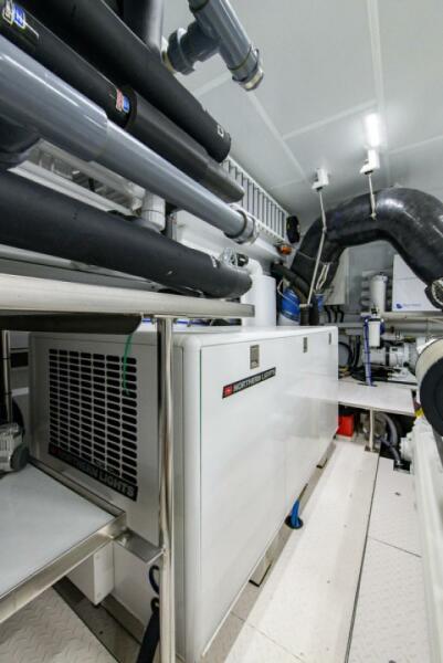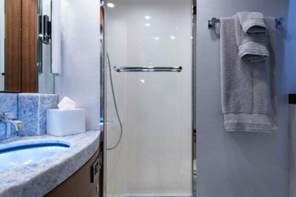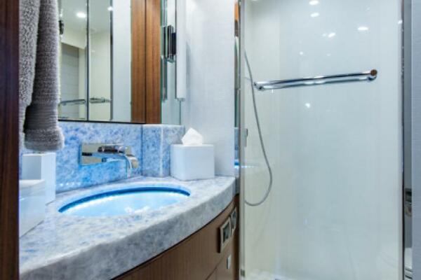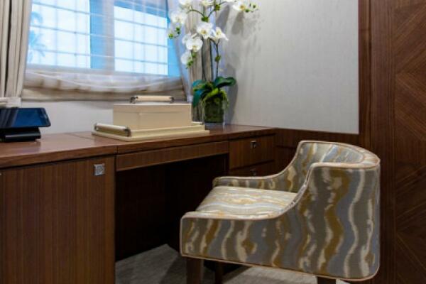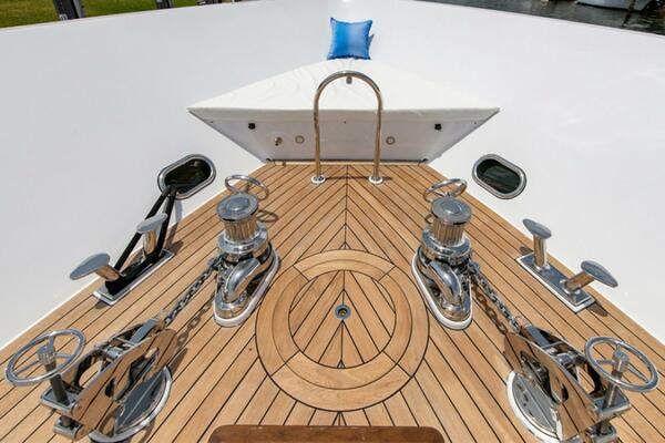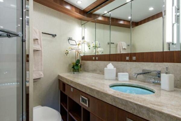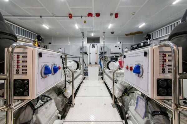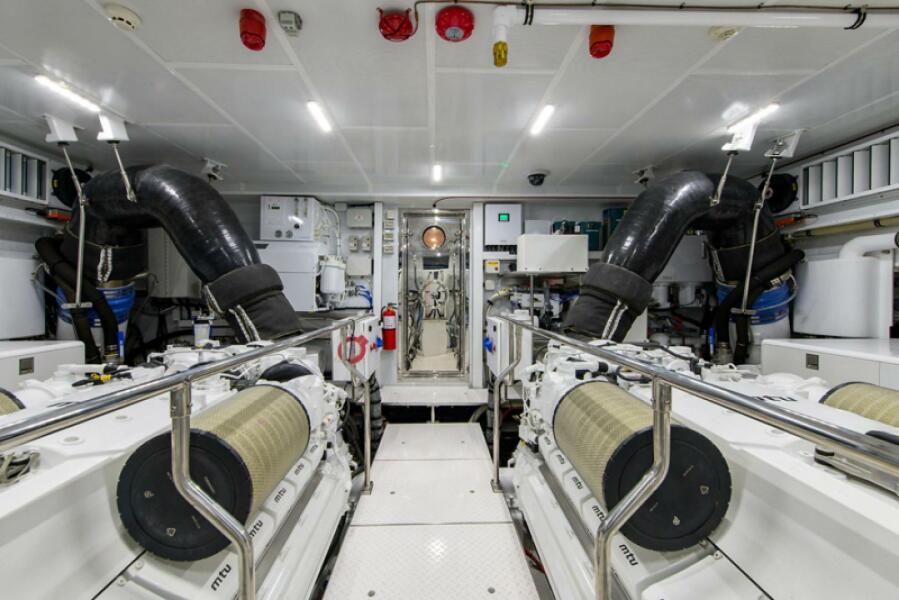 The speed of the G120 is achieved from the combination of the Jack Sarin semi-displacement hull design and the hi-torque, quiet power of the MTU 16-cylinder power plant. Rated at 2,185 horsepower each, with a cruising speed of 20 knots and top speed of 25 knots, the MTU 16V2000 engines are the gold standard in this horsepower range. With 7,000 gallons of fuel the yacht has a best in class range of 1,800 nautical miles at 10 knots. This is a key requirement for those who are used to travelling long distances throughout the US and Caribbean cruising grounds.