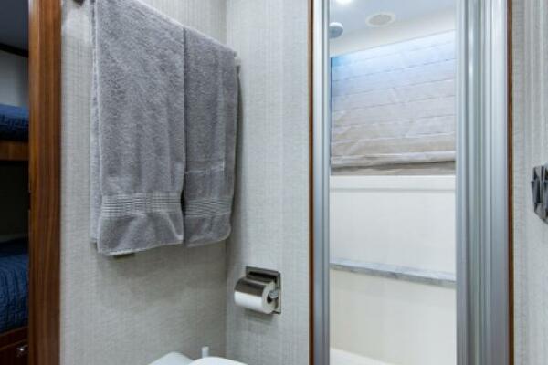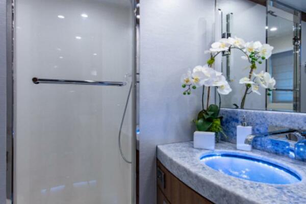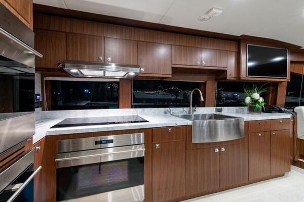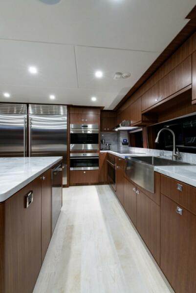 With hospitality as its core feature, the 2020 Hargrave G120 Signature Series presents ample and comfortable spaces for socializing. Every nook and corner of the yacht is designed with the capacity to host 10 or more guests in absolute ease. The aft deck area is a perfect spot to soak up the sun or enjoy the shade as it boasts multiple lounge spaces, a hot tub, bar seating, and a grilling station. Every detail has been meticulously crafted with ultimate comfort and relaxation in mind, creating a serene atmosphere for all onboard.
