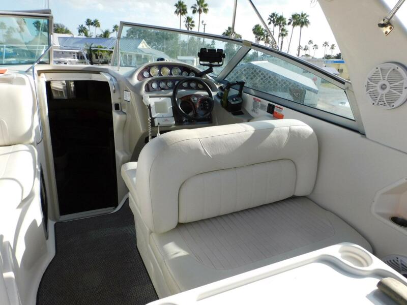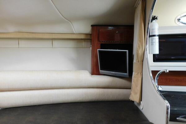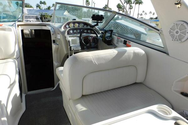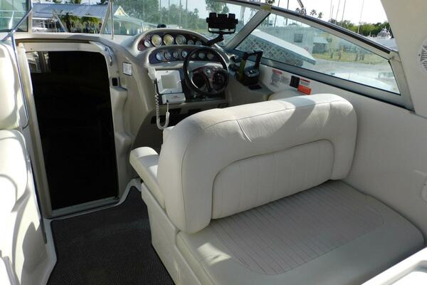 In the cockpit, captain's chair is double seat, the aft opposed bench seats and port-side lounger make for a very social atmosphere. An extended swim platform makes a day at the sandbar a breeze for all the family and friends. Twin Volvo Penta 5.7 OSI cruises the 302 at 27 knots with 36 knots being tops. A must see if your looking for a great express !!!