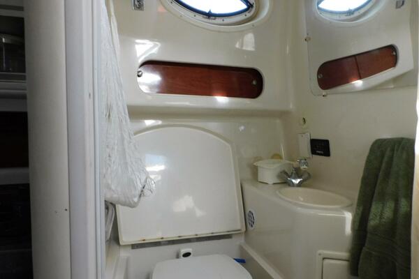 The forward berth can be converted to a berth or left as a secondary dinette and full galley to starboard. The mid-cabin with a door instead of a curtain gives privacy for extended stays at anchor or cruising.