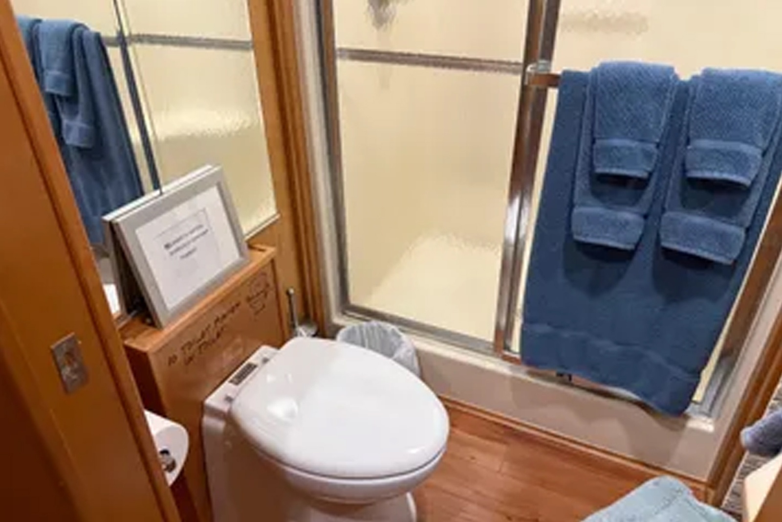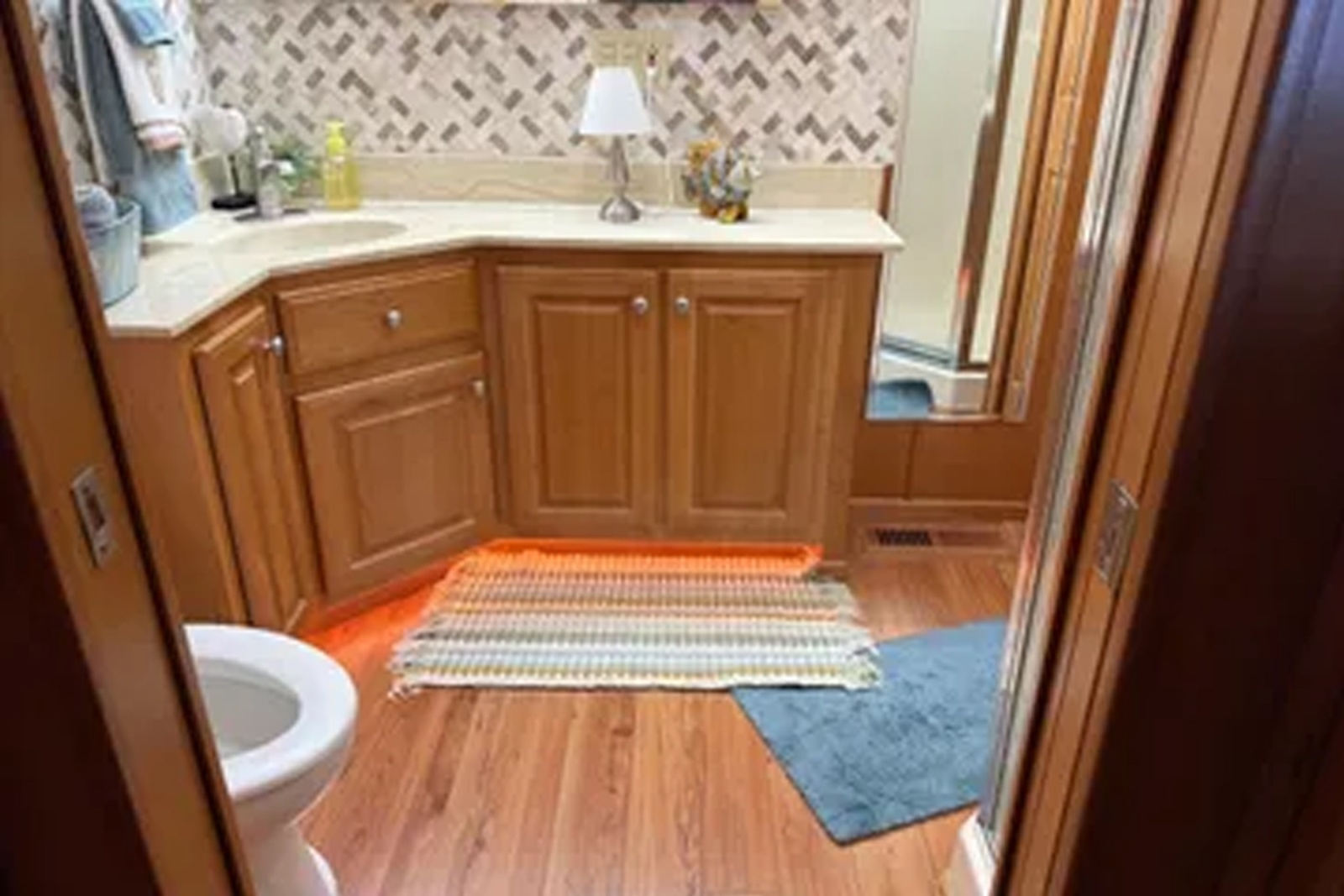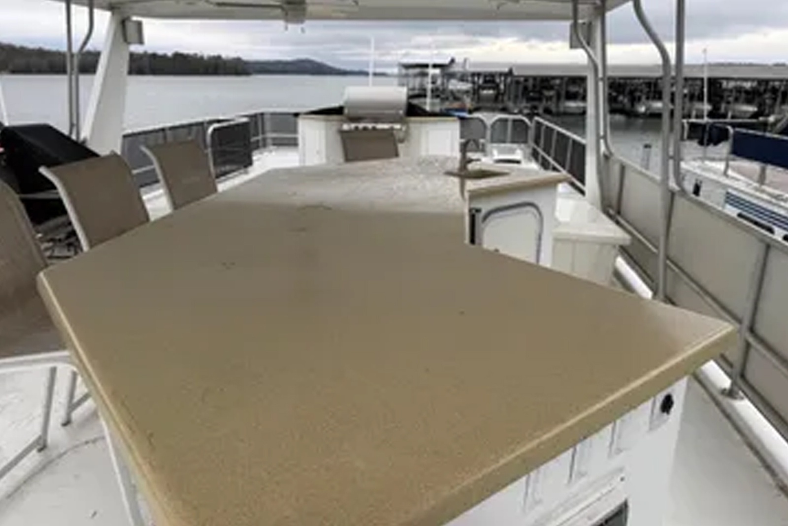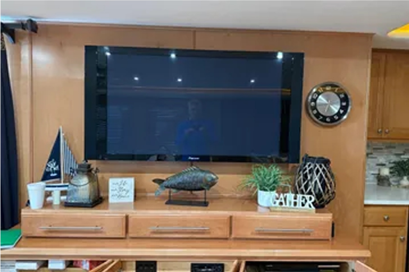 Updated and plenty of room for family and friends. Four staterooms and 2 full heads. Large galley/dining area with more than enough storage cabinets Under floor storage for bulk items and supplies Large salon area with L shape sofas and large screen for TV and family movie night. Large storage
