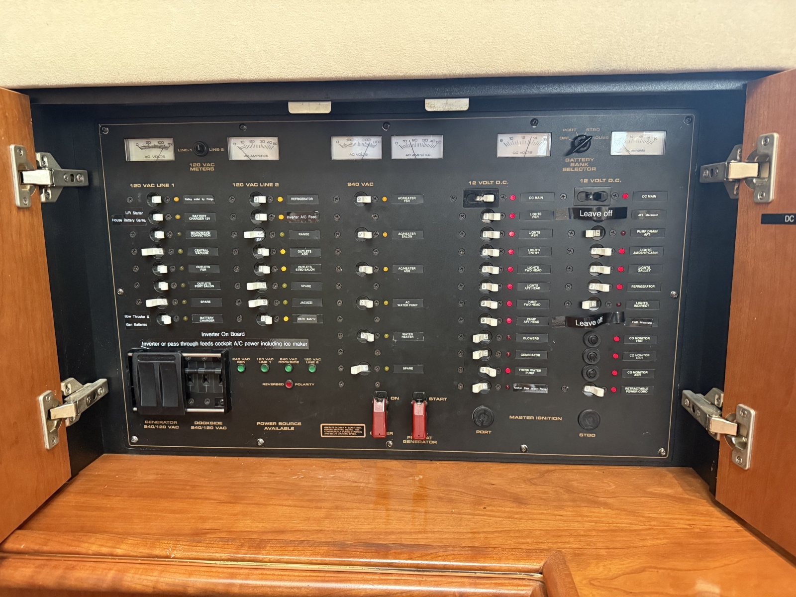 - Recent professionally installed Xantrex 2000-watt inverter with large house bank of batteries to run Starlink and cockpit fridge/ice maker when other A/C sources are off (also will run coffee maker and salon TV, by plugging power strip into inverter below those items)