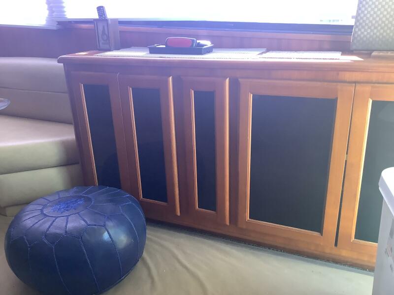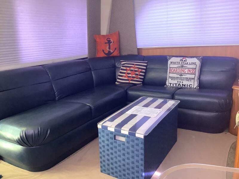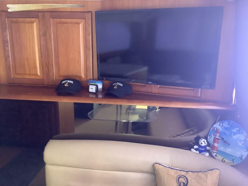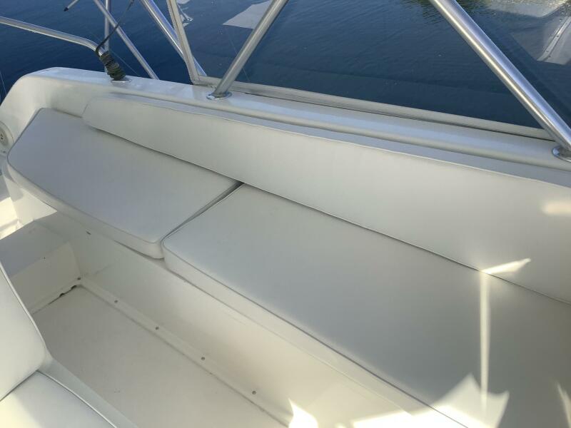 Great flybridge for cruising or fishing. Two helm/ navigator seats with great view in all directions. Seating on port and in front of the helm console. Factory fiberglass hardtop with 3-sided enclosure. Overhead electronics/ radio boxes in addition to the 2 navigation system enclosures on the console, new.