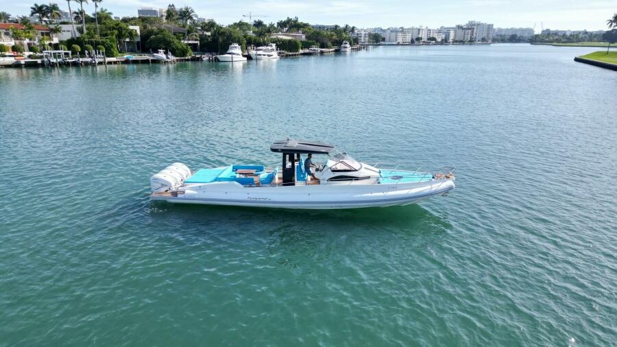 The 2021 Cantieri Capelli Tempest 50, offered by Wave Marine Group, is the perfect vessel for those who seek thrilling adventures on the water. Powered by four Yamaha V8 outboard engines, this 48.4-foot RIB delivers impressive performance with a top speed of 48 knots, making it ideal for both cruising and water sports. Its robust design and spacious layout ensure you can enjoy every moment, whether you're exploring the coastline or hosting friends for a day of fun.