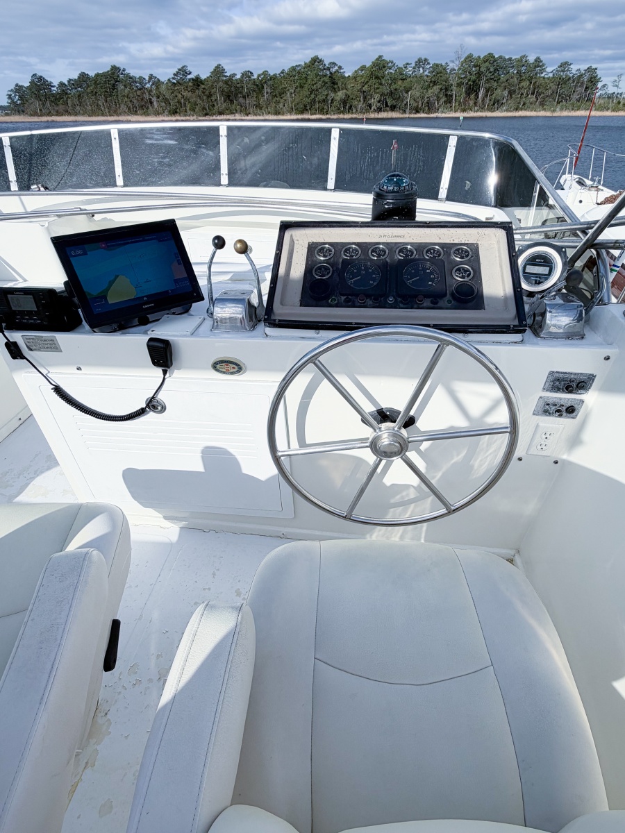 This particular vessel stands out with dependable twin Caterpillar 3208 diesels (4,000 hours), a desirable 4-stateroom layout, and a huge aft sundeck enclosed with new Isinglass—creating the perfect all-weather entertaining space. With a spacious aft master, dual helm stations, and all the comforts of home including generator, air conditioning, and updated electronics, SOLIDARITY is equally suited for extended cruising or full-time living aboard.