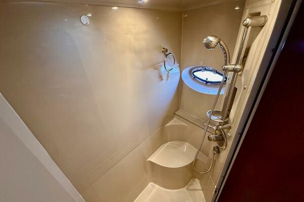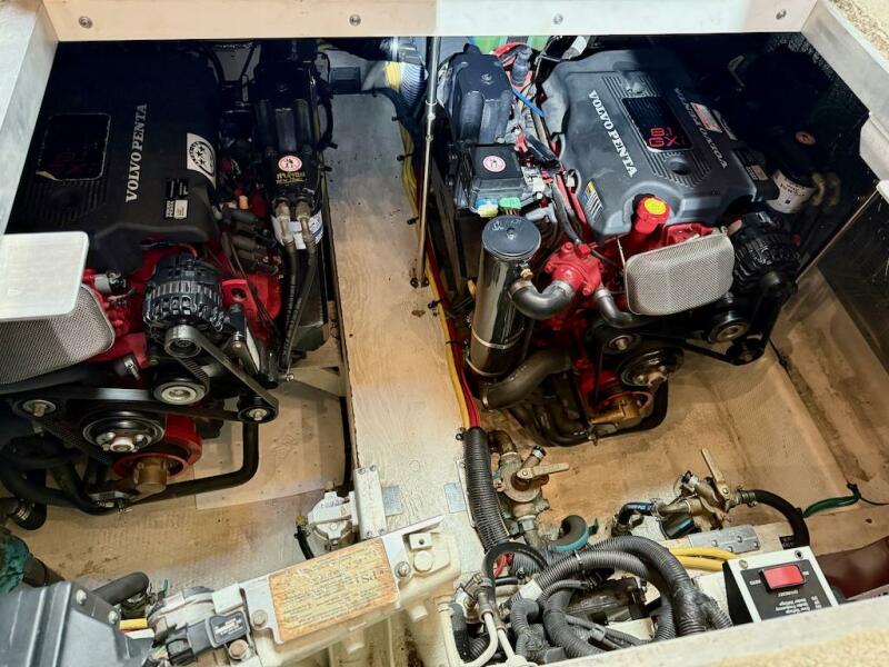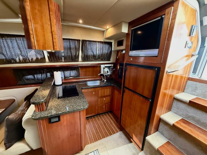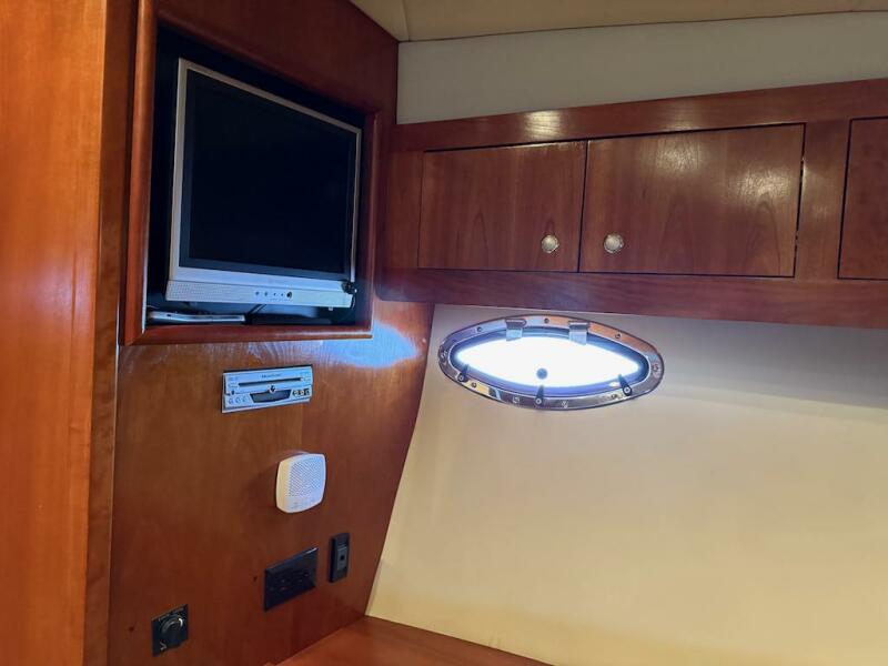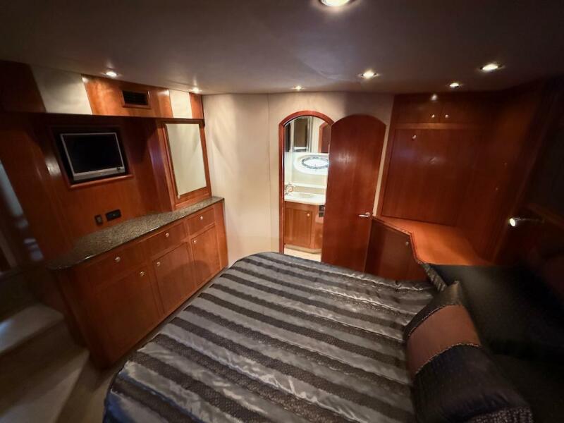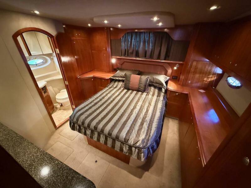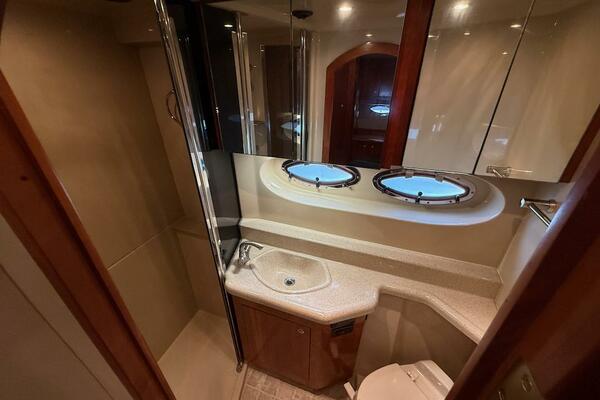 Down below, you'll find a well-appointed interior with rich Cherry joinery throughout. A palatial aft owner's cabin offers a comfortable retreat with a private head while the forward guest cabin provides comfortable quarters with a dedicated guest/day head. Both heads feature separate shower stalls.