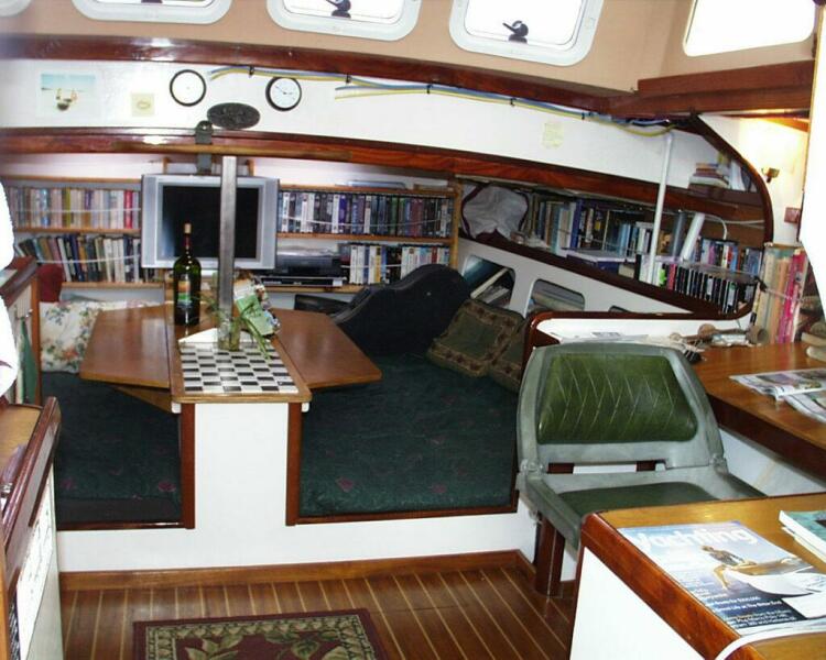 § U-shaped galley to port ; top-loading DC Isotherm 4 ft3 reefer/freezer; Seaward Princess 3-burner propane stove w/ oven; full size sink w/ hot and cold pressure water plus fresh water foot pump
