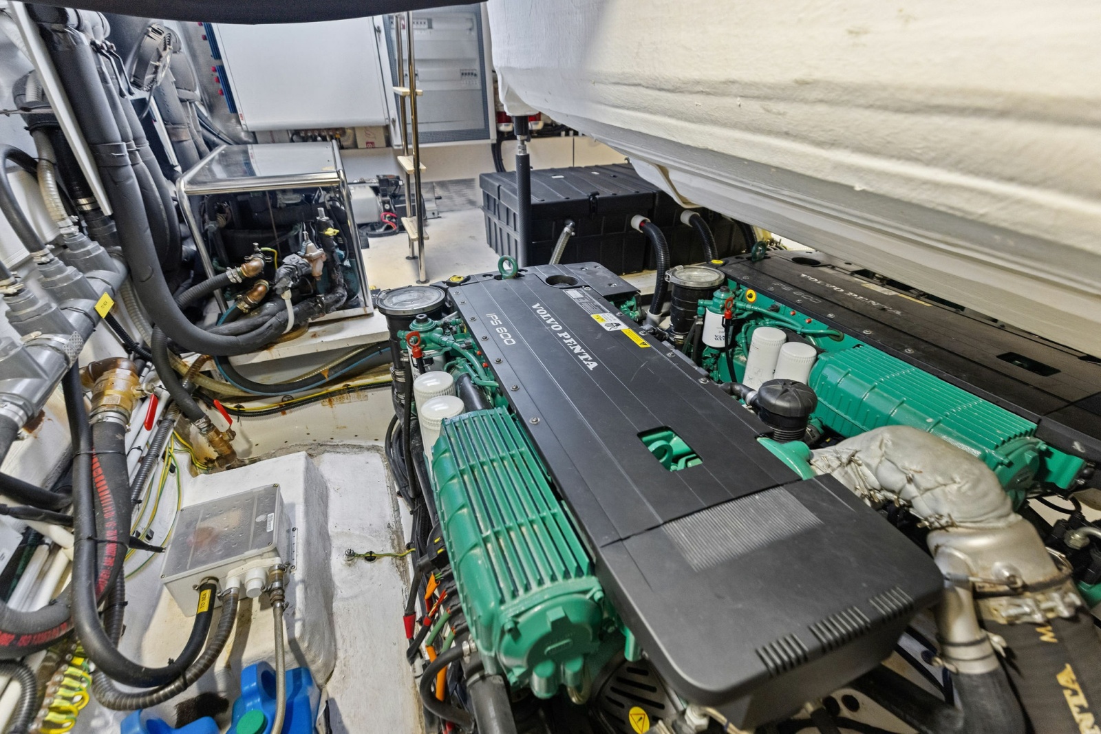 - Engine cooling system: dynamic seawater intakes integrated in IPS system for port and starboard engines and dynamic seawater intake in keel with ball valve located fore of the port engine which serves the central engine