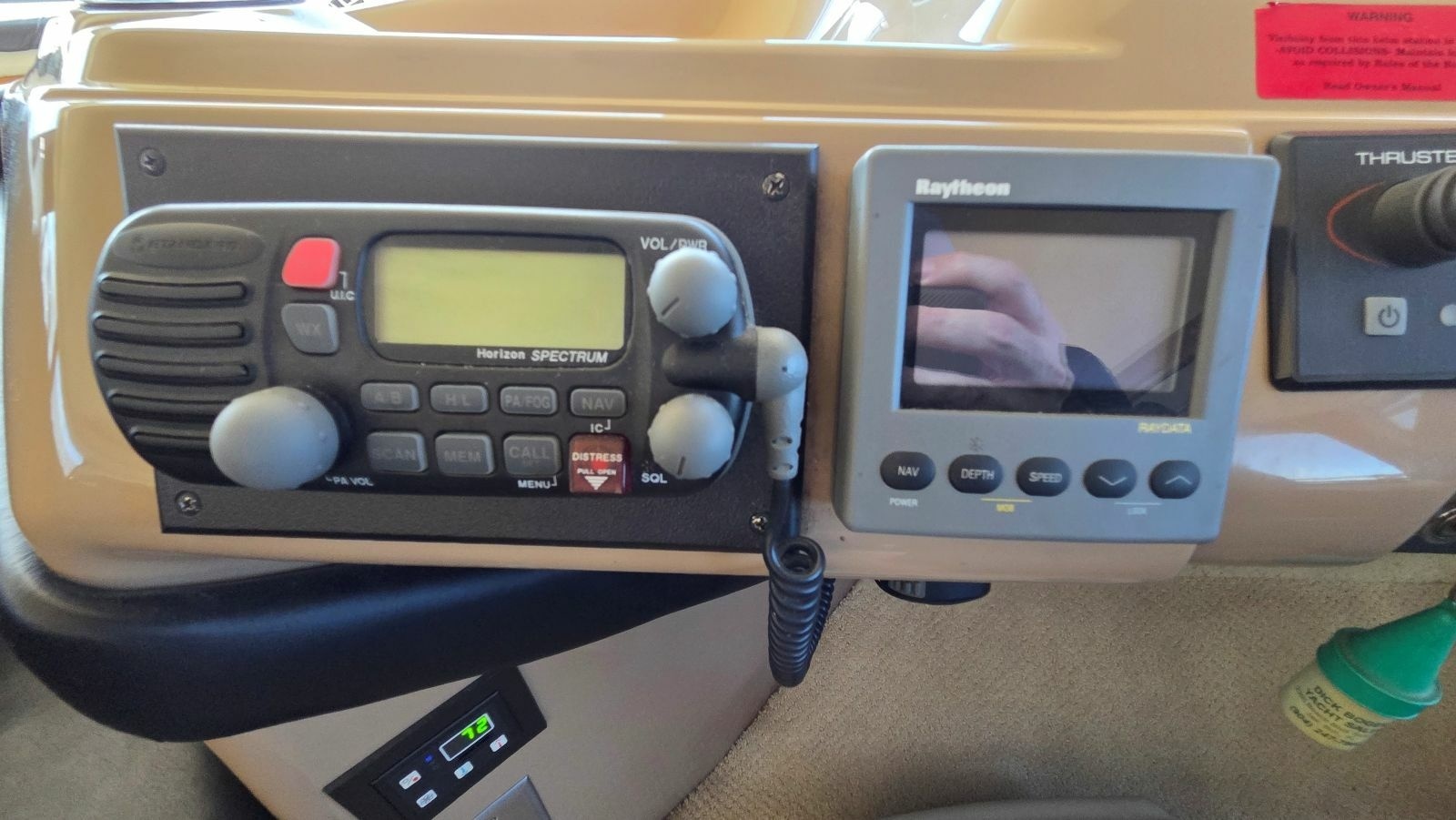 Seating throughout the flybridge has been refreshed with new upholstery, giving the space a clean, updated appearance while improving overall comfort. The layout provides ample room for guests to relax, making it an ideal setting for socializing, enjoying the view, or simply unwinding after a day on the water.