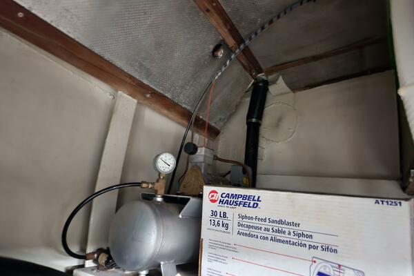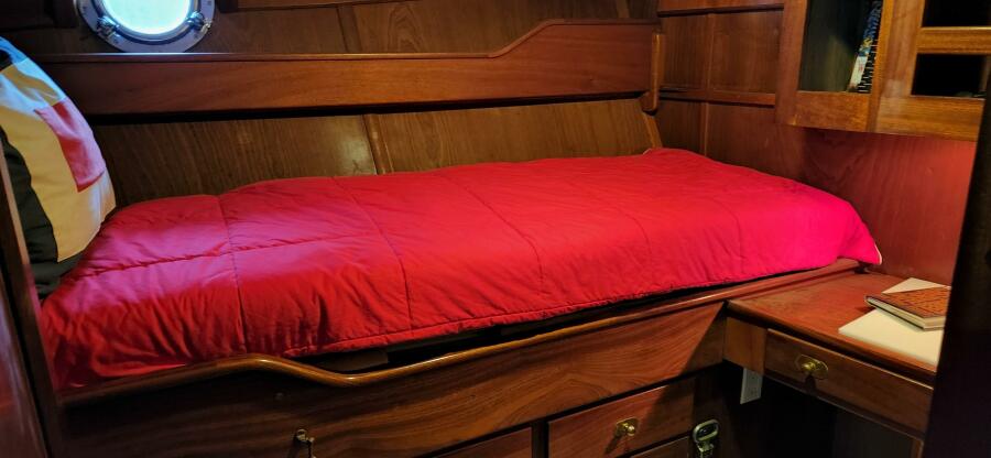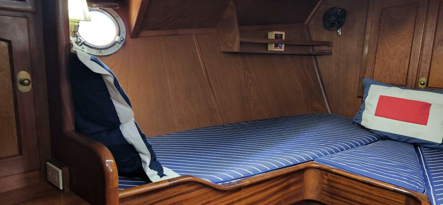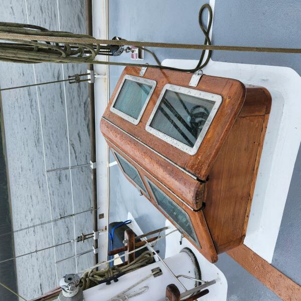 The jib, staysail and mizzen are each about 12 years old and in good condition. The mizzen staysail is older, we think 20 years, and looks it. Amazingly, it is actually a very good sail and just keeps going. Lines are mostly pretty new. Most of the standing rig was replaced about 14 years ago (quite un-necessarily). It's a very stout rig with 5/8 wire and 1-inch pins.