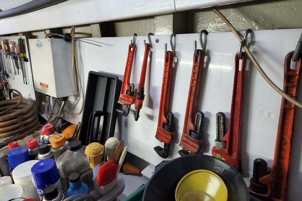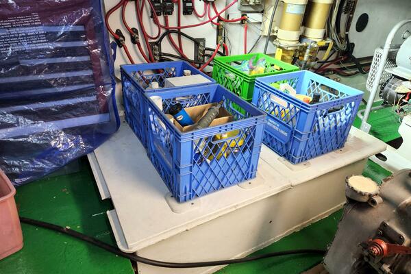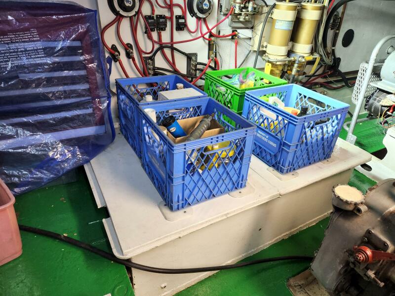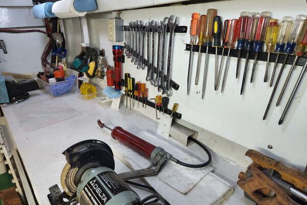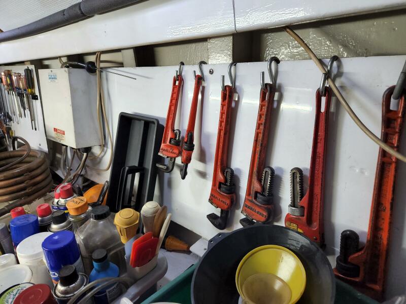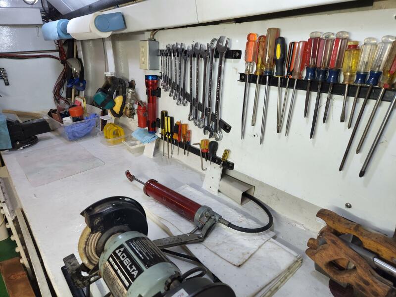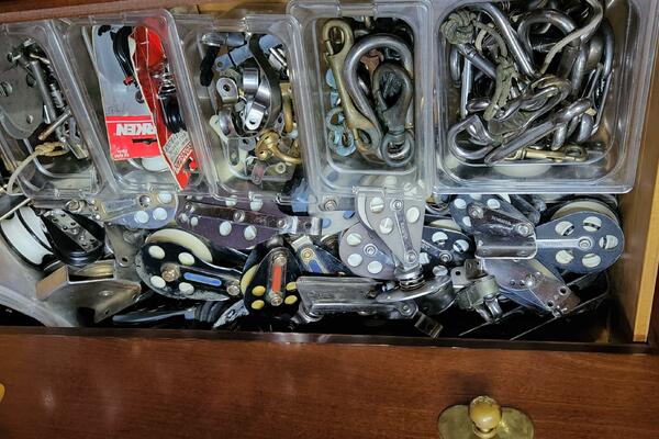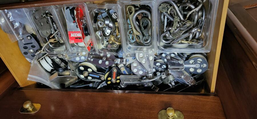 - Large electric department, tools, wire, connectors, spare Simrad autopilot, meters, breakers, switches and more