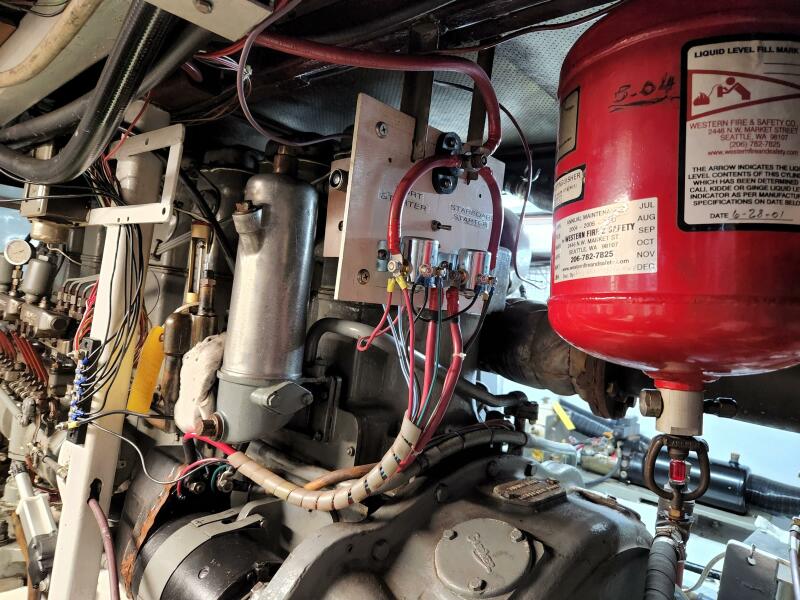Starters: The main engine has 2 identical redundant 24vdc starters, one port side, one starboard. We had both serviced 10 years ago. We have replaced the original series circuit Lucas solenoid with parallel wired solenoids so that the starter can be selected with a simple toggle switch. Now, a starter can be removed for servicing without shutting down the boat. One starter is plenty sufficient to start the engine and these starters are still available.