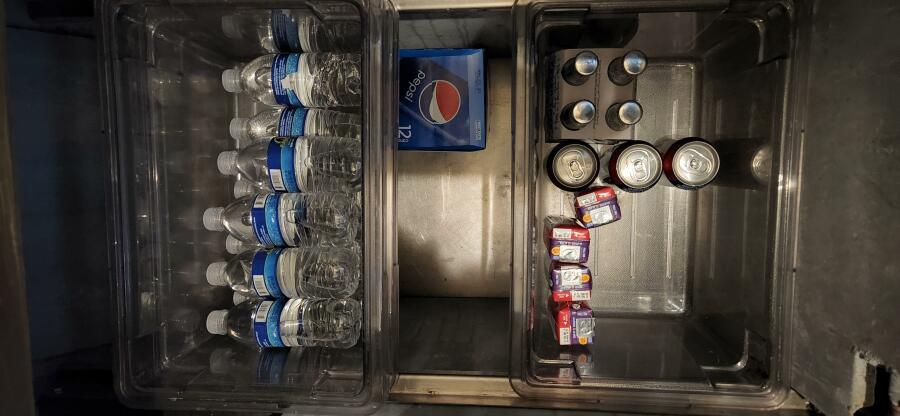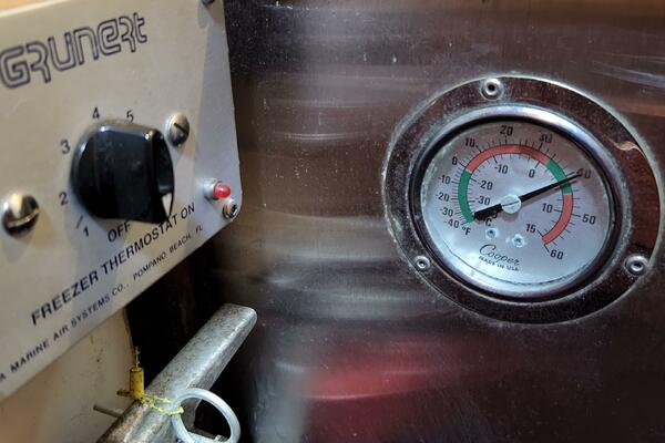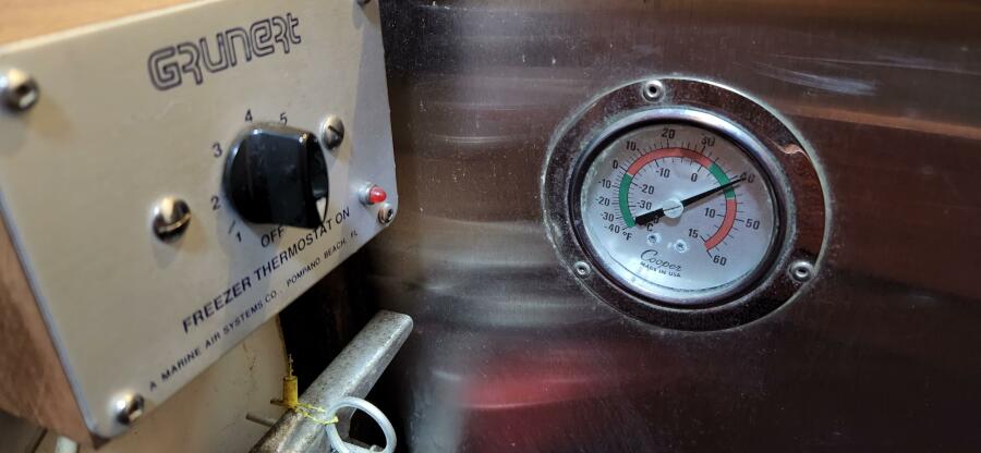 There is a large cold plate type refrigerator with a top quality Grunert compressor system. Two Norcold top-load coolers are aboard for energy efficient freezing and refrigerating. There is also a gigantic cold plate freezer for packing away a couple of deer or a moose. Or beverages.