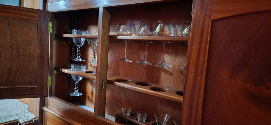 Virtually all of the interior is done in a beautiful south pacific wood named Vesi, sometimes referred to as Fijian teak. The wood is rare today and, like New Zealand's Kauri, has been outlawed to cut for decades. Vesi is now being farmed but will take time to grow. The joinery is excellent, and the wood is in excellent condition and beautiful. Most of the interior has great head clearance and 6 footers will like it. Most of the floors are carpet, many with teak or vesi floors beneath.