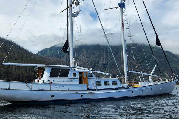 Havfruen is a tough, long-range cruiser with a gracious interior, full-beam owner’s cabin, four additional private cabins, and a Gardner diesel. Extensively updated and sailed double-handed, she’s proven on long Alaska passages and ready for her next voyage.
