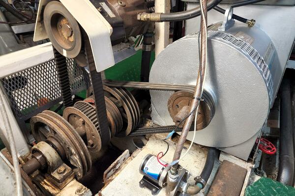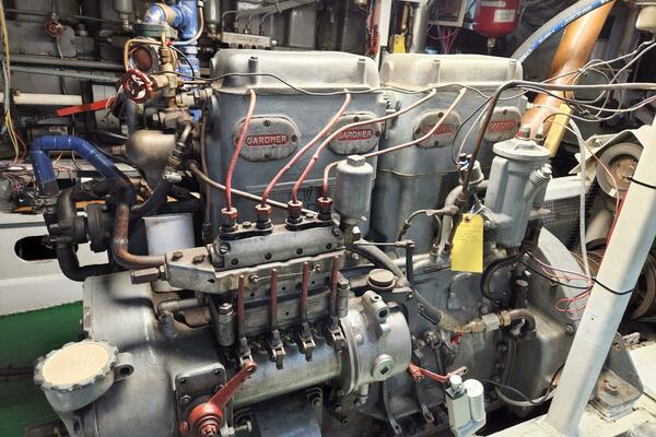 Havfruen is powered by a single, venerable Gardner 8L3B, the last and best diesel engine made by Gardner. The reversing gear is a Twin Disc 2:1 reduction driving a 3-inch shaft. The propeller system is a Hundested variable pitch 4 blade propeller, all the best of the day.