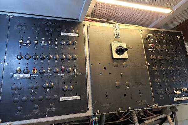 AC power can be supplied by shore power, by a 7,500- watt Northern Lights generator, by a 20,000 watt generator driven by a 4 cylinder Gardner 4LW, or by a 3,000 watt true sine inverter which delivers 110v.