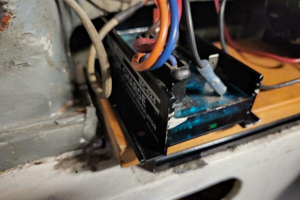 Anchor windlass power is supplied by a pair of group 29 batteries located in the V-berth which is plenty sufficient for multiple anchor retrievals. Charging current is from the engine room Charles charger.